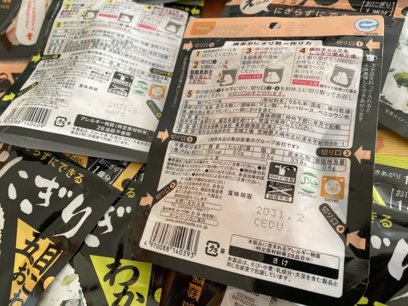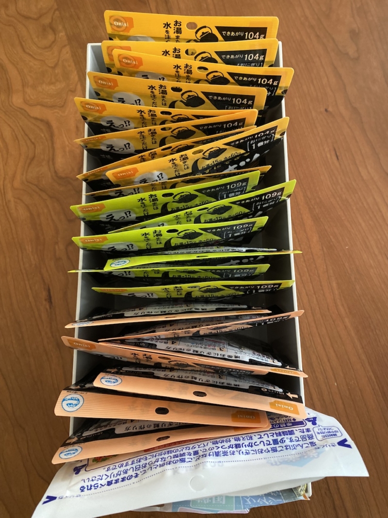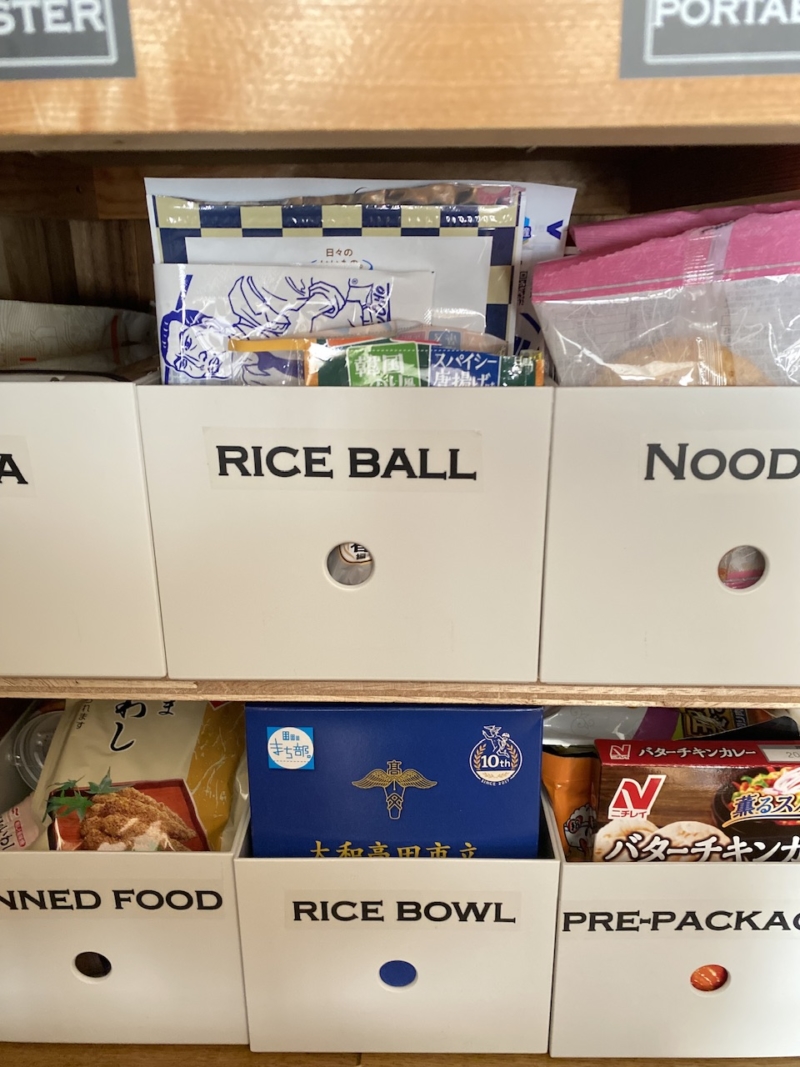 その後ろには、ご飯が炊けない環境でもオニギリが食べられるように、おにぎりストックはこちらのコーナーに。