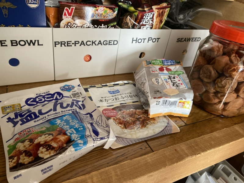 ご飯のお供となるおにぎりの具を備えている、日常づかいの収納ですが。