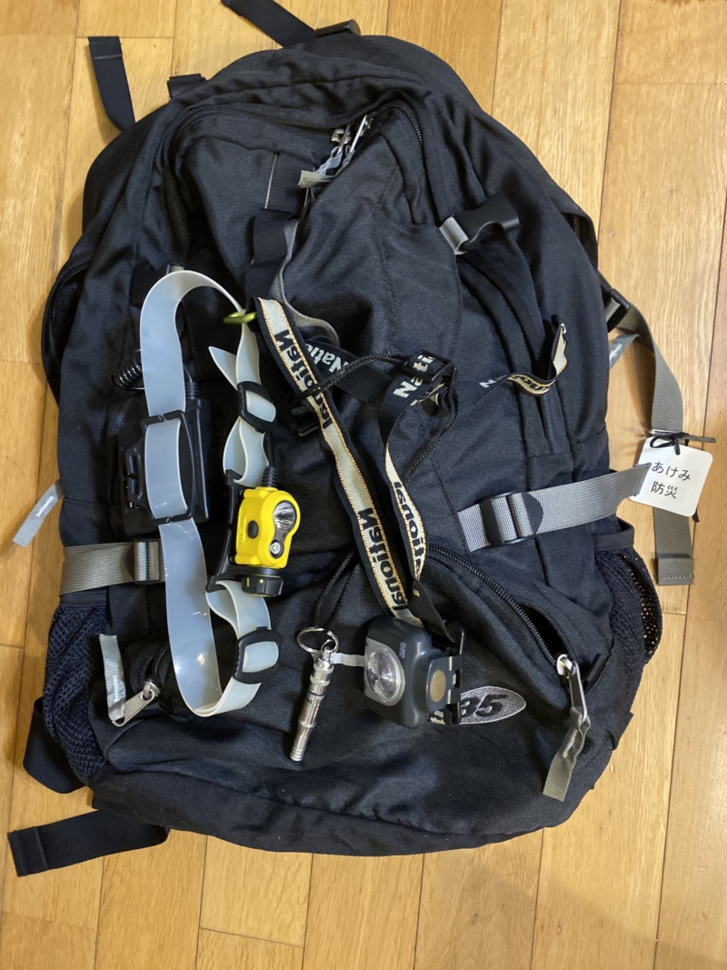 毎年1月(防災リュックは登山用を活用しているため、登山の機会があった年はそのタイミング)に見直している防災用持出リュック。